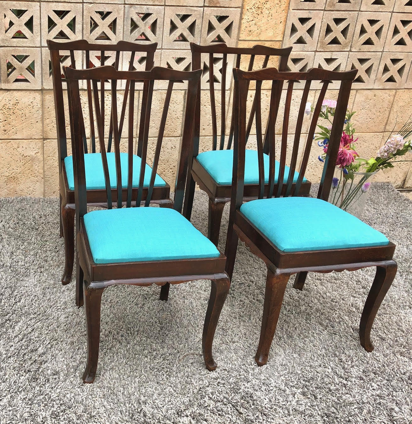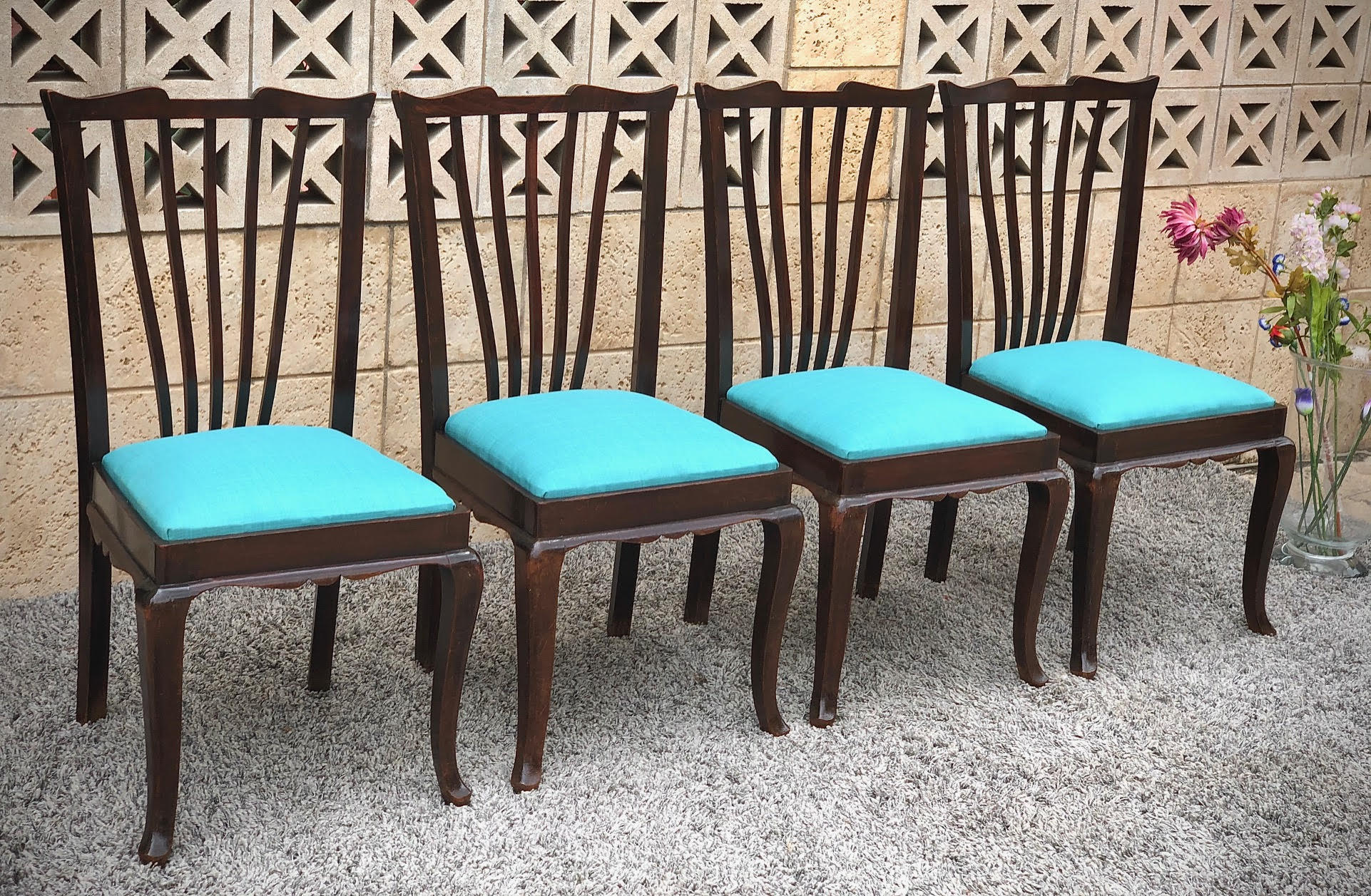 כסאות וינטאג' תכלת מחודש D02