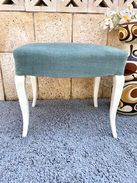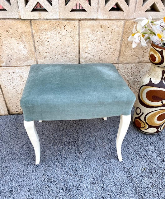 שרפרף וינטאג' מיוחד ויפה עשוי עץ בשילוב עם בד קטיפה בגוון ירוק סטייל מושלם