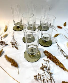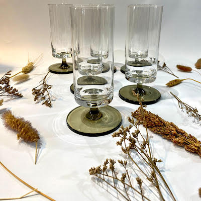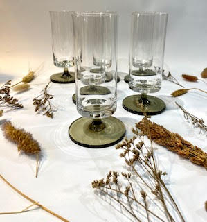 כוסות עשויות זכוכית דקה עשירות ומפוארות בגוון ייחודי עם תחתית קלאסית במצב מושלם